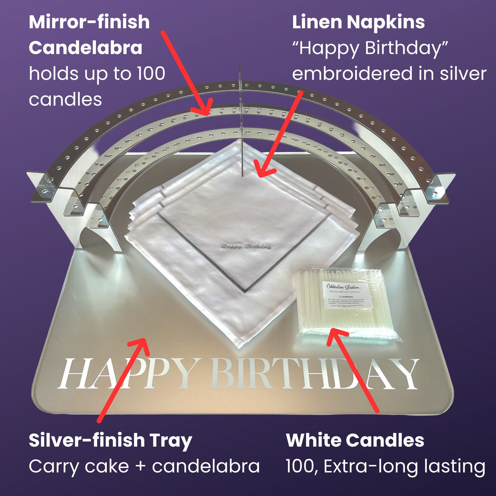 - Silver-finish "Happy Birthday" carrying and centerpiece Tray